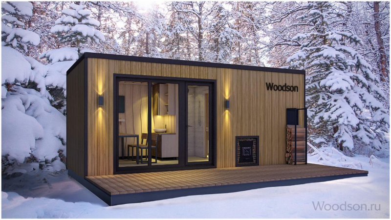 Компания Woodson выпускает бани на металлокаркасе, популярной моделью стала Woodson Panoramic , которая является любимым местом отдыха всей семьи и друзей.