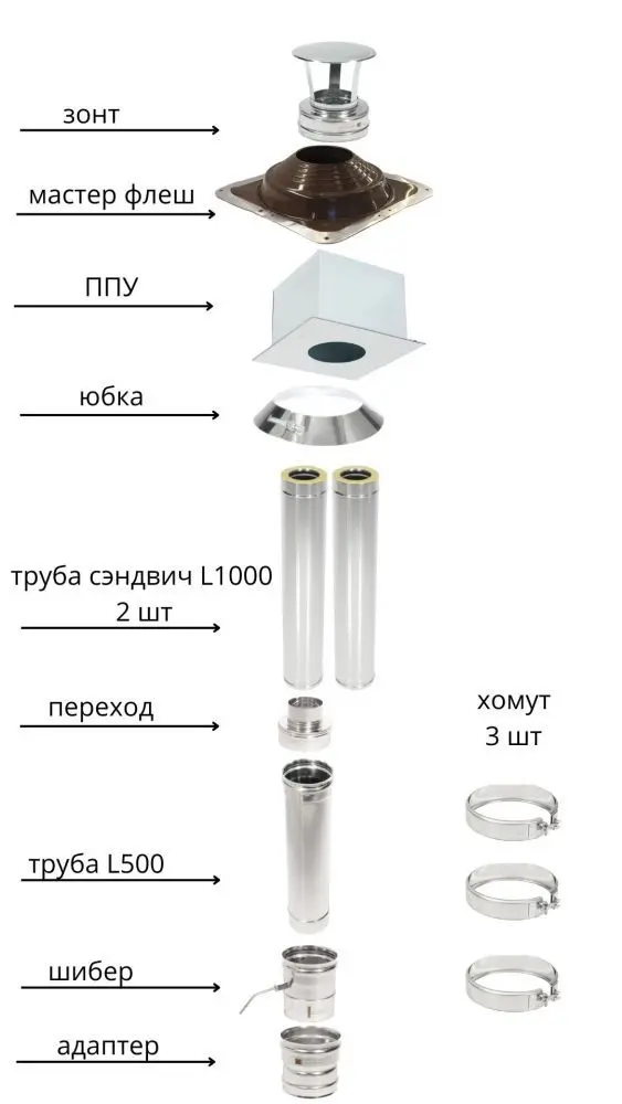Комплект дымохода 430-0.8 D115 для печей состоит: