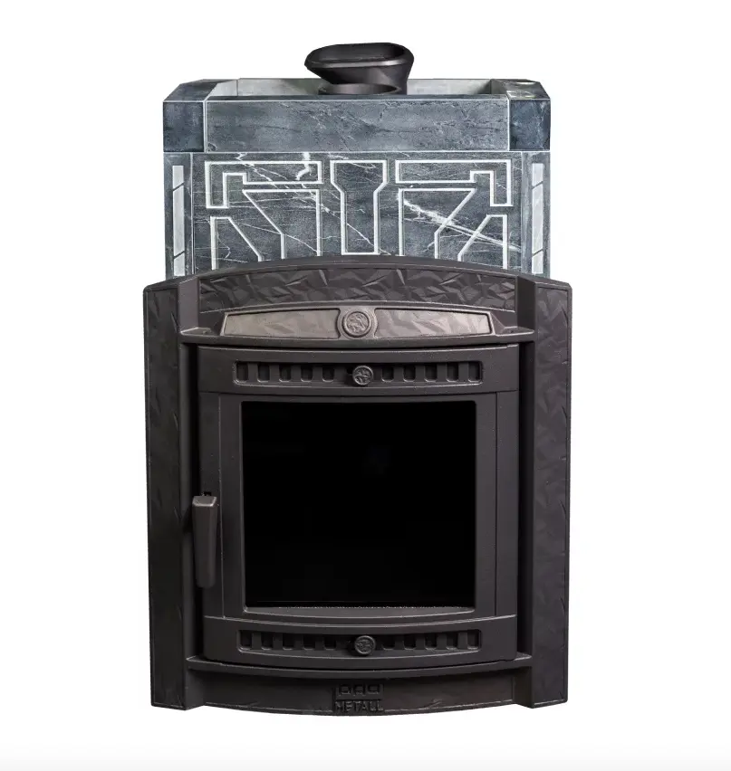 Модель печи в стильной и практичной облицовке из «Талькохлорита» узор №7. За счет использования несущих брусков, состоящих из цельного камня, теплоёмкость печи увеличивается на 50%. Конструкция просто собирается и позволяет легко заменить любую деталь в случае необходимости. Цена и КПД такой облицовки отличаются оптимальным соотношением.